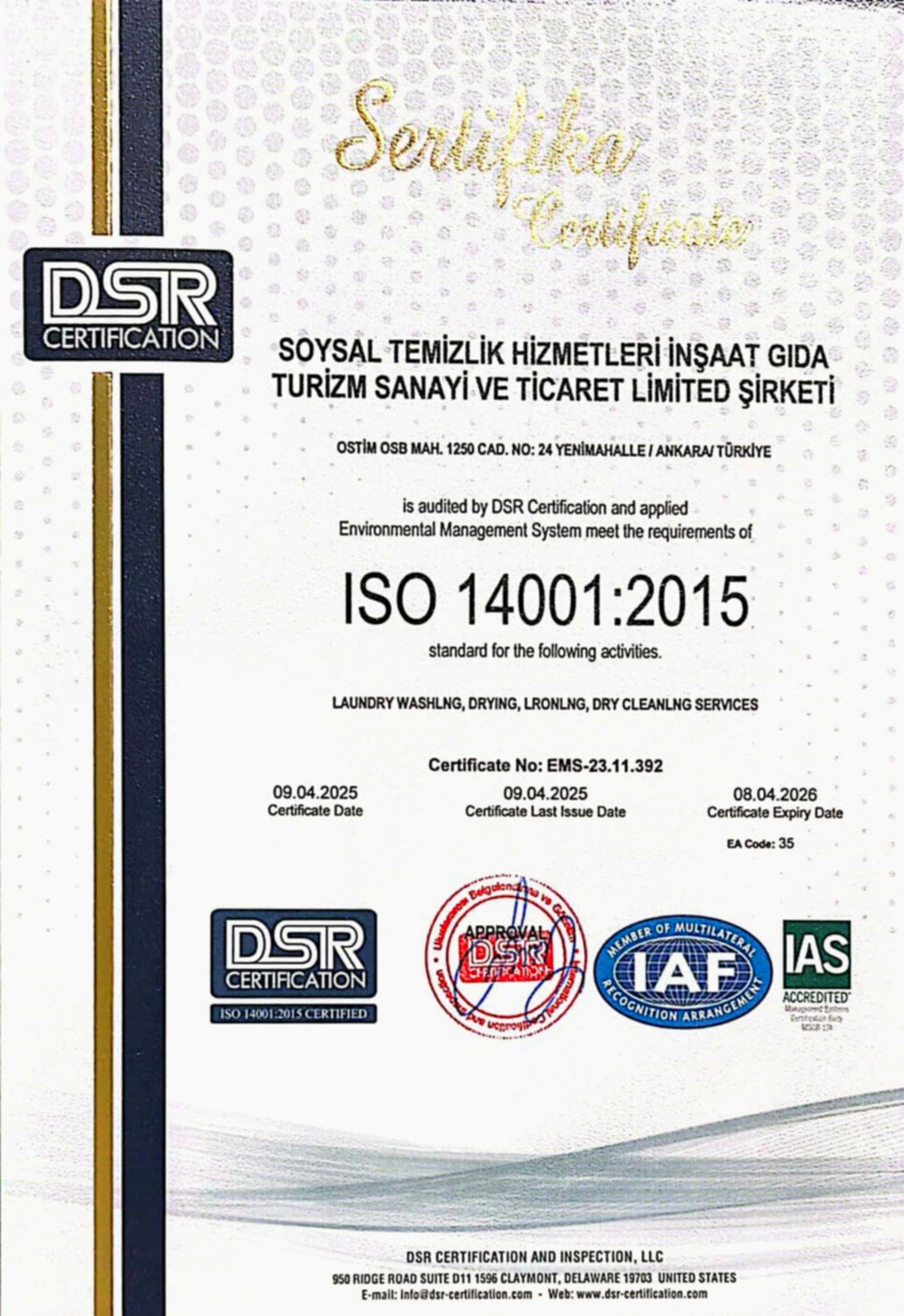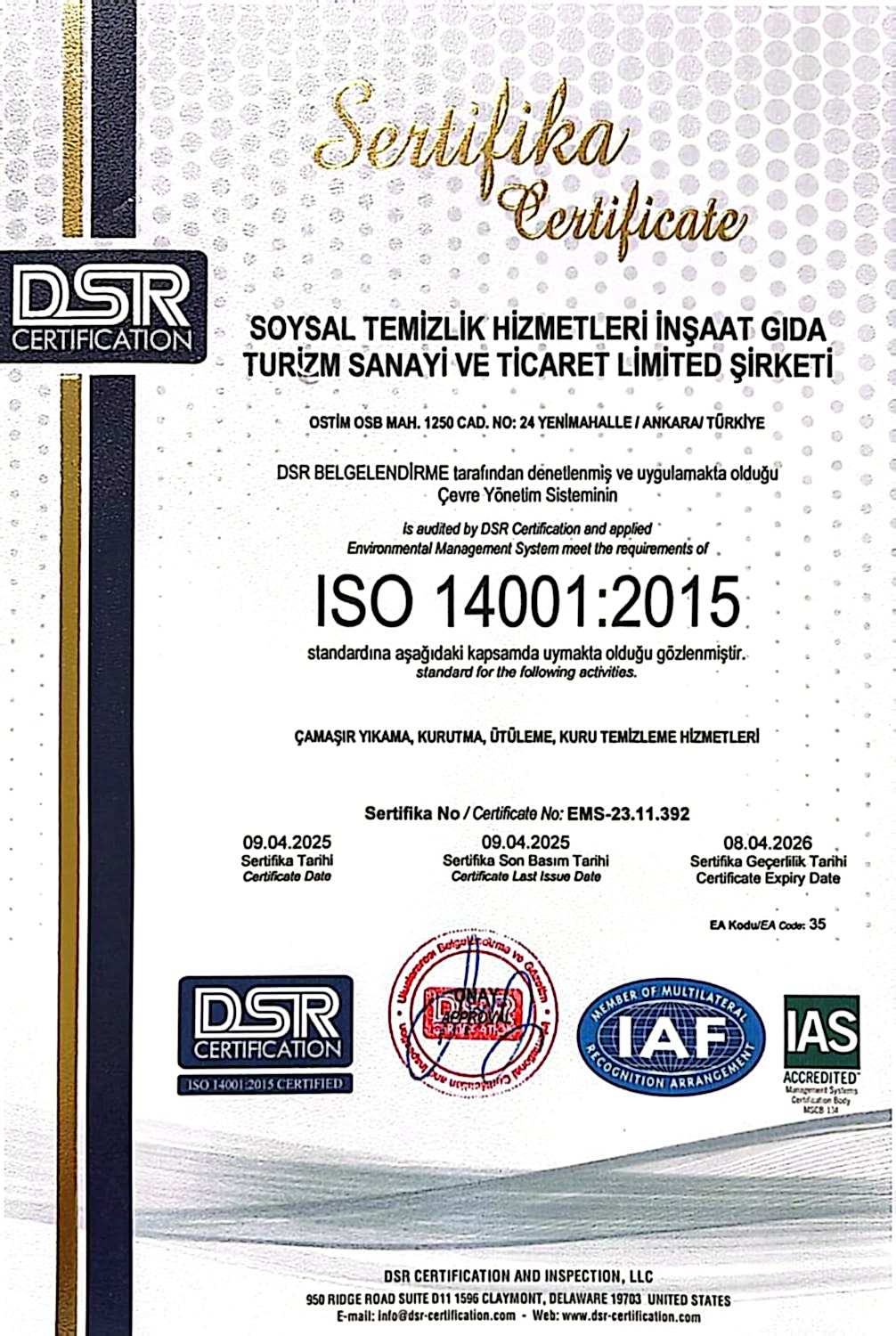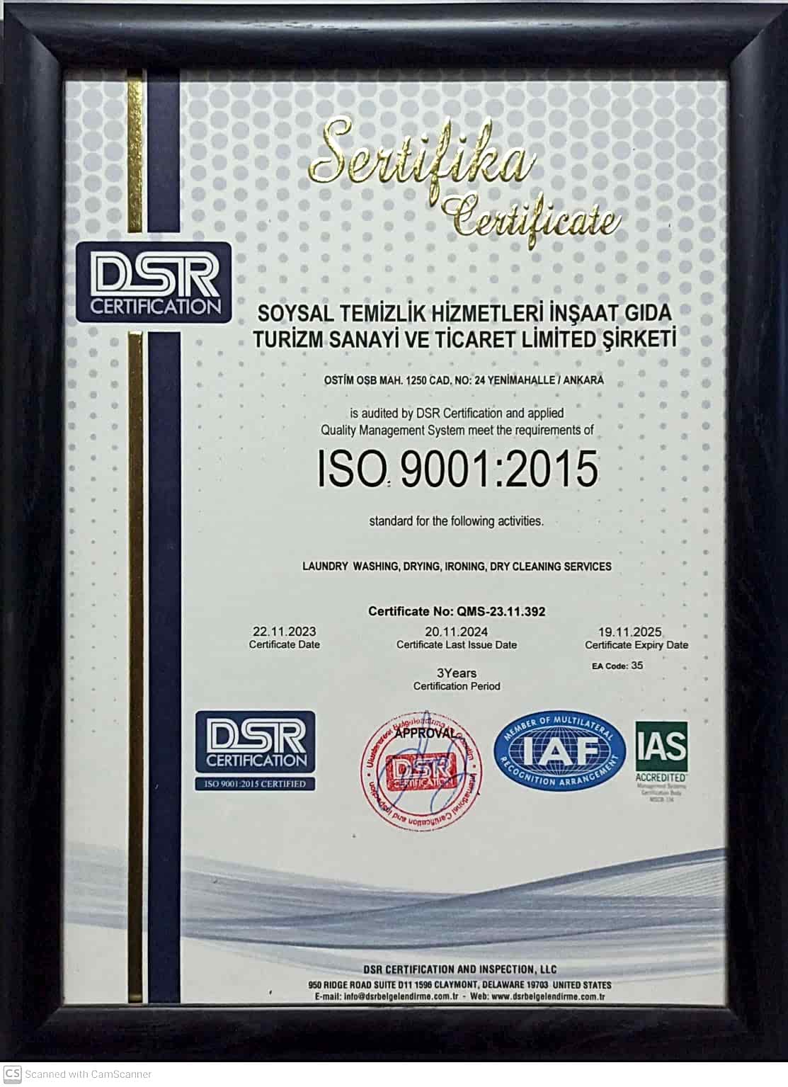 Müşteri memnuniyeti felsefesinden yola çıkarak, çamaşır yıkama sektörünün lider konumuna ulaşmak ve Ankara ile tüm Türkiye’nin saygın firmaları arasında yer almaktadır. Faaliyet gösterdiği tüm sektörlerde, çalışanları ve müşteri memnuniyetini en üst düzeye çıkarmak için iyi standartlarda hizmet sunmak, rekabetçi büyüme politikası ile şirketi, sektörü ve ülke ekonomisi için öncülerden biri olmak, çağımız koşullarına uyumlu bir şekilde ileriye doğru yol alırken toplumun kalkınmasına katkıda bulunacak kuruluşlar arasında yerini almaktır.